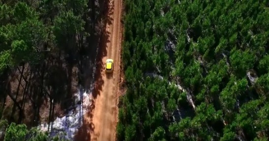 Fotografia przedstawia Q2 z lotu ptaka. Auto zostało zaprezentowane na szutrowej drodze w środku lasu, co pokazuje, że Q2 będzie nie tylko typowo miejską zabawką.