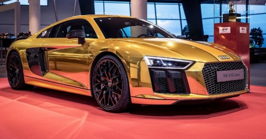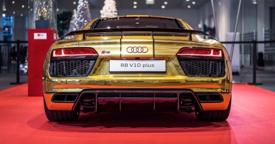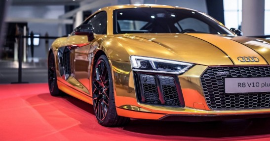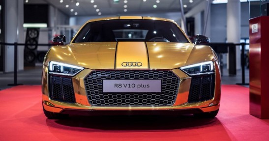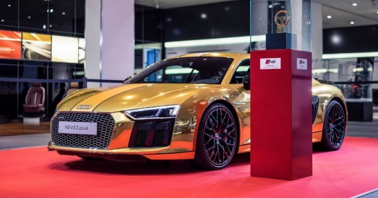 Audi Forum w Neckarsulm to miejsce, w którym niemiecki producent cyklicznie prezentuje wyjątkowe wersje swoich modeli. Obecnie jedną z tamtejszych gwiazd jest R8 V10 Plus Gold, które jak sama nazwa wskazuje wyróżnia się złotą kolorystyką.
