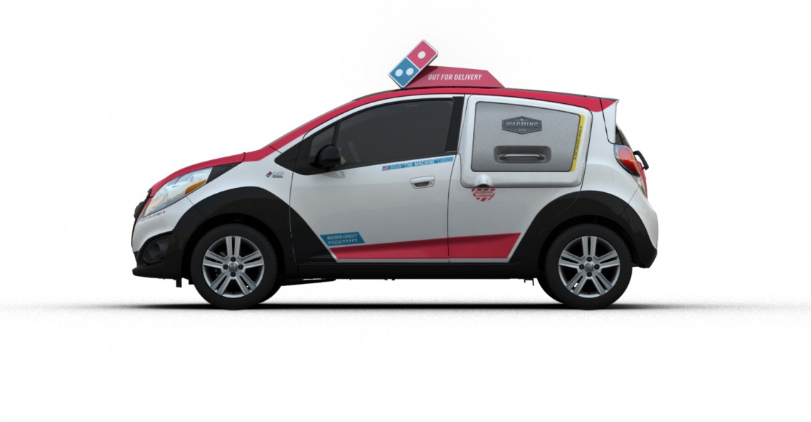 Oto Domino DXP, czyli Chevrolet Spark idealnie nadający się do rozwożenia Pizzy. Już niebawem 100 takich aut trafi do kilku miast USA, gdzie będzie rozwozić posiłki do klientów sieci Domino`s Pizza.