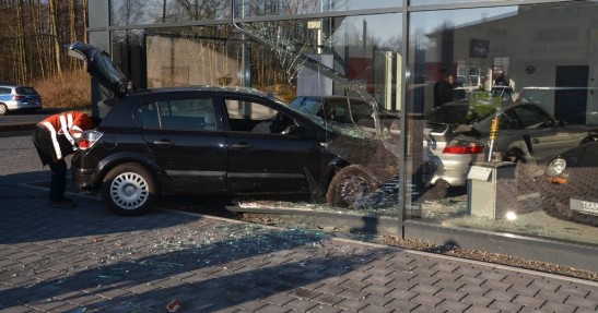 Świadkowie twierdzą, że Astra wpadła w poślizg, przejechała przez trawnik i przebiła ścianę salonu. Na szczęście ucierpiała jedynie fasada budynku oraz przednia część nadwozia Astry. Kierowcy nic się nie stało. Porsche zaparkowane w salonie odniosły natomiast powierzchowne obrażenia