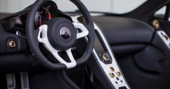 Co ważne, złoto zagościło także we wnętrzu. Pokryto nim niektóre przełączniki, co tworzy świetną kompozycję z białymi wstawkami kokpitu. Co ciekawe, zdecydowana większość McLarenów sprzedawanych na Bliskim Wschodzie jest dziełem specjalistów z MSO.