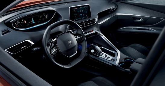 Jeszcze więcej dzieje się we wnętrzu wyposażonym w i-Cockpit. Znajdziemy tu 12,3-calowy ekran zastępujący zegary oraz 8-calowy wyświetlacz multimediów. Deska ma kształt charakterystyczny dla nowych Peugeotów i zdecydowanie może się podobać.