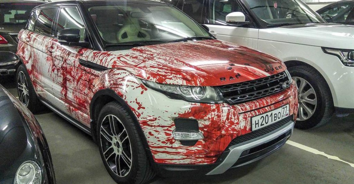 Jego właściciel postanowił ubrać zwyczajne, białe nadwozie w krwawe wstawki, dzięki którym auto wygląda jakby właśnie wjechało w tłum przechodniów. Bez wątpienia tak ozdobiony pojazd przykuwa uwagę, choć niektórych może przerażać.